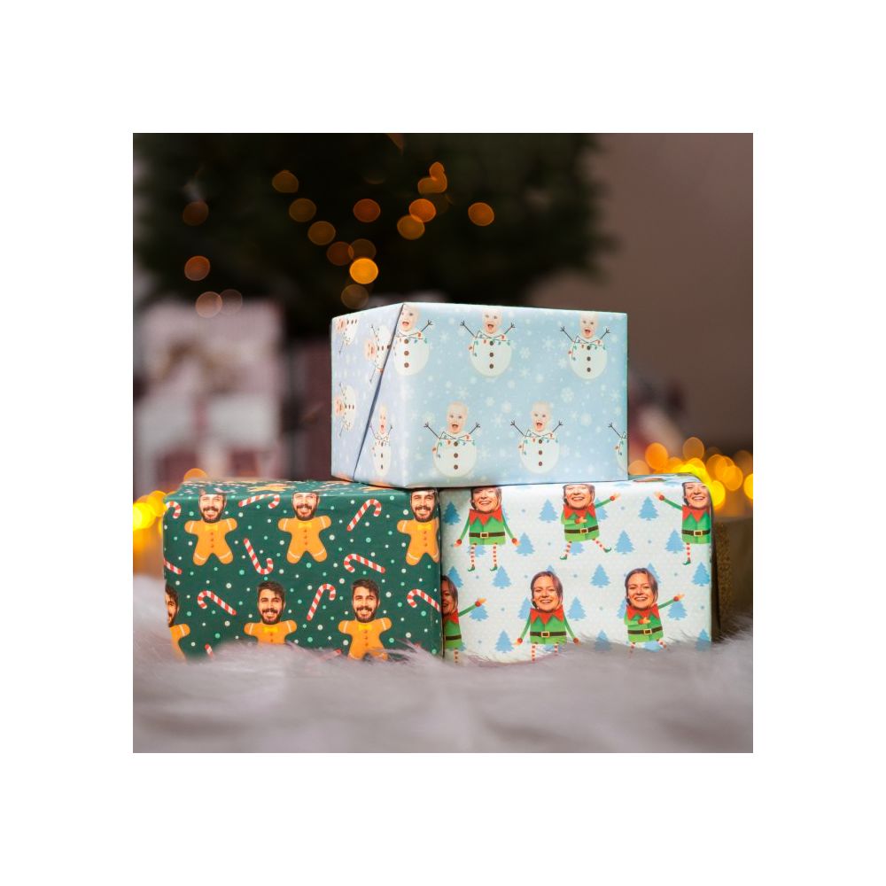 Falls ihr - und wir wollen doch hoffen, dass dem so ist - ihr eure Weihnachtsgeschenke-Liste bereits fertig oder zum überwiegenden Teil fertig habt, bleibt eigentlich nach Formalitäten wie Bestellung etc. die Frage übrig, wie und womit man sie denn einpackt, die Geschenke. Was uns auch gleich zum Thema bringt: Dem personalisierbaren Geschenkpapier Weihnachten mit Multi-Gesicht auf verschiedenen Hintergründen, dass euch für euer Gesicht als Foto zum Hochladen genau den richtigen Rahmen bietet. Mit persönlicher Note. Zum Beispiel für die Weihnachtszeit.