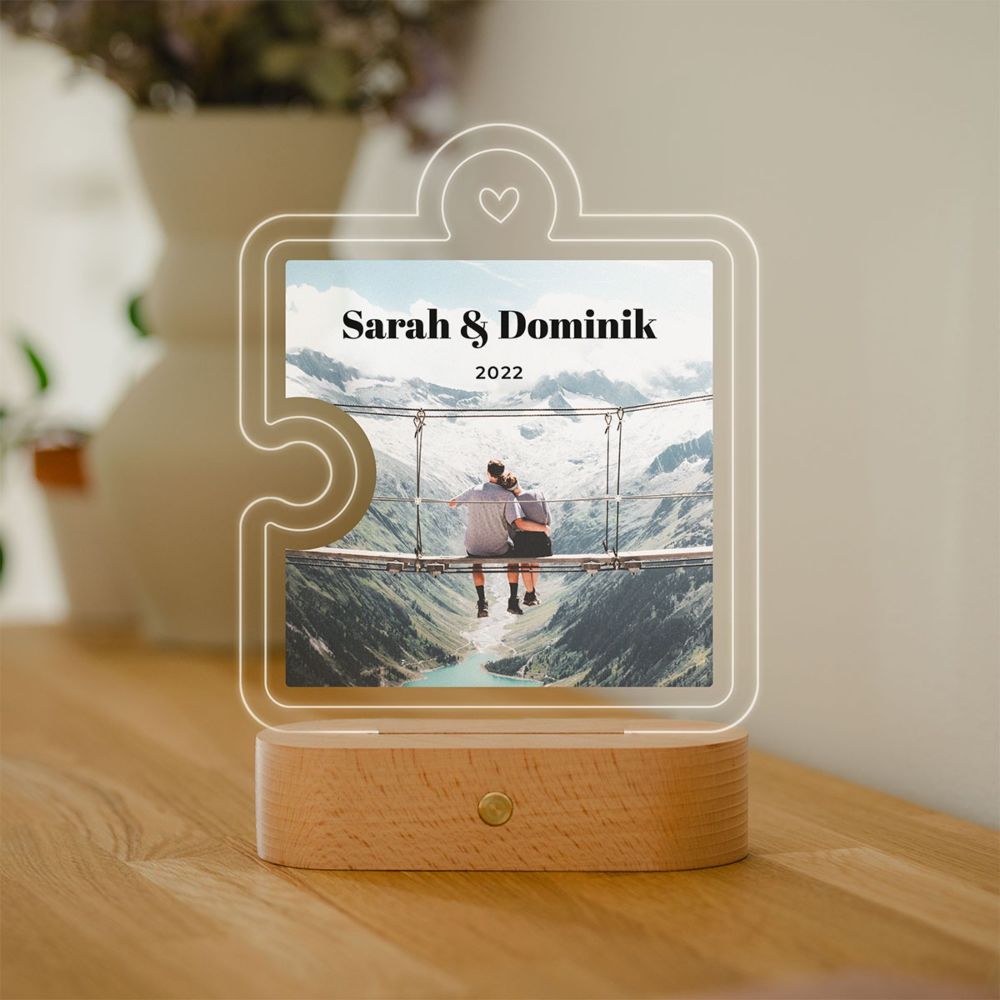 - Personalisierbare LED-Lampe Puzzle Teil mit Foto und Text