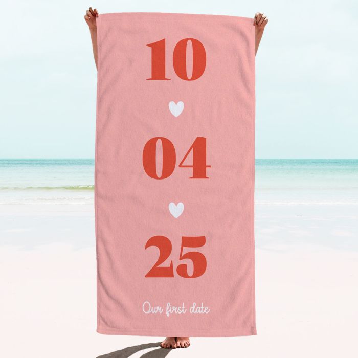 Ein Handtuch, das Geschichte schreibt – im wahrsten Sinne. Ob Hochzeitstag, erster gemeinsamer Urlaub oder der Moment, in dem alles begann: Mit deinem eigenen Text und einem bedeutungsvollen Datum wird dieses Handtuch zur ganz persönlichen Erinnerung.