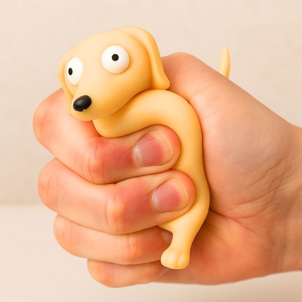 Dieser kleine Dackel steht dir zur Seite, wenn’s im Alltag mal wieder drückt. Der süße Vierbeiner ist kein gewöhnliches Spielzeug, sondern ein handlicher Stressball, der sich perfekt drücken, knautschen und quetschen lässt, ganz ohne Bellen.
